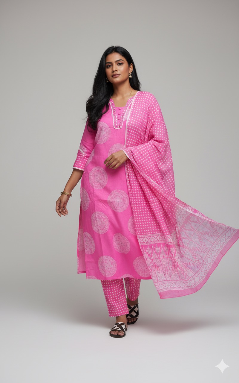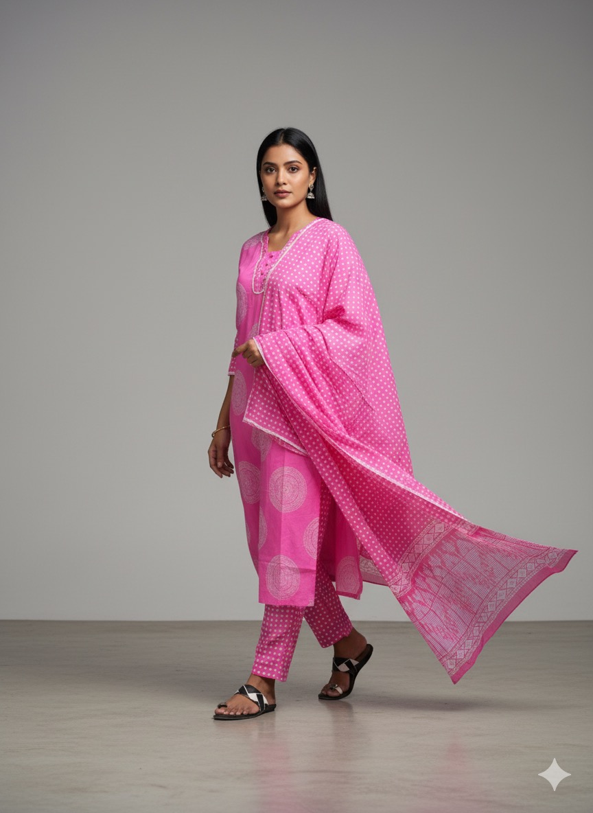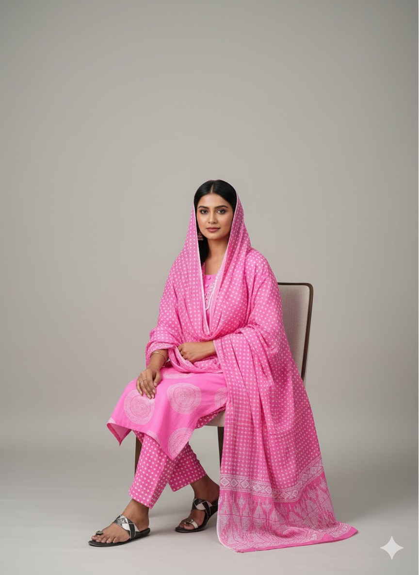 Baby Pink Jaipur cotton office wear 3 piece set with complete lining