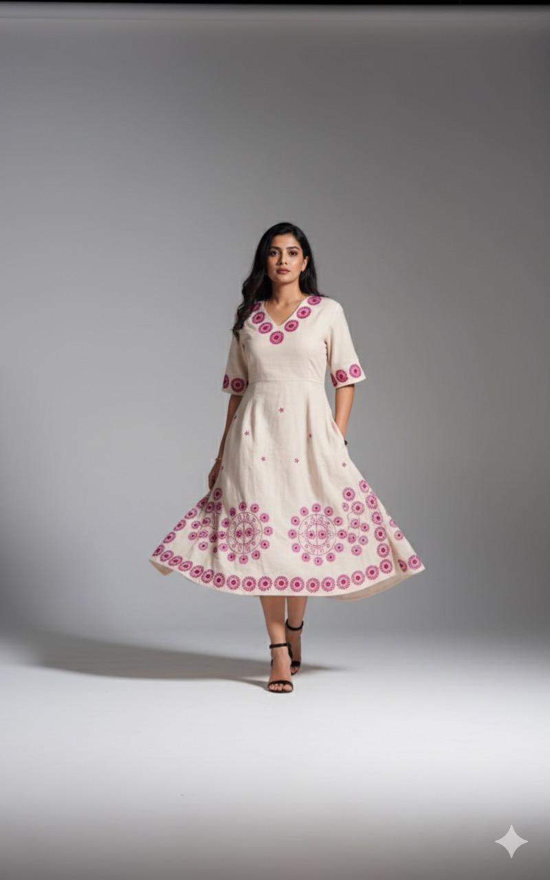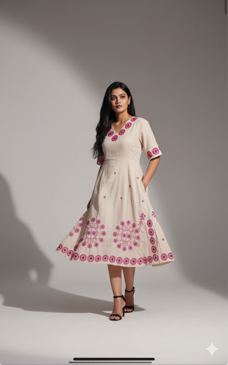 Celebrity inspired jaipur cotton long tunic with thread embroidery work