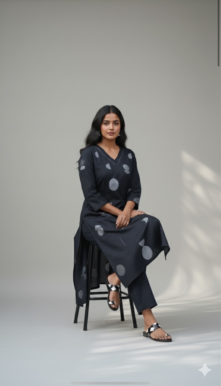 Black colour jaipur cotton polki dots