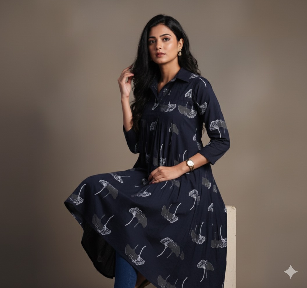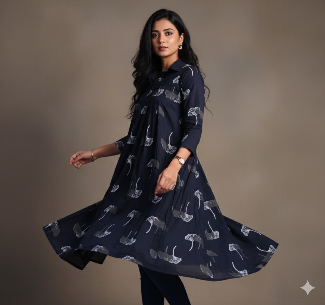 Short cotton tunics with white print