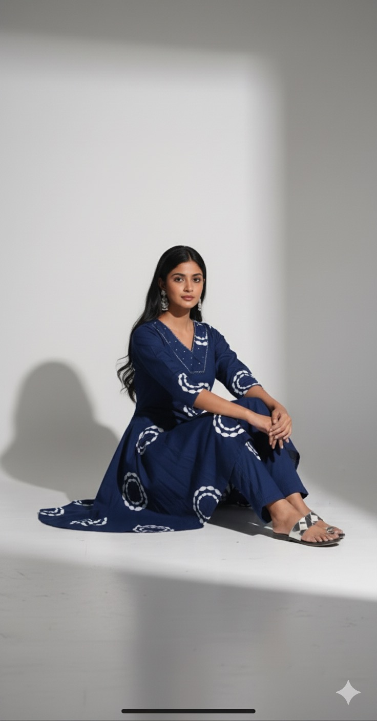 Beautiful blue colour jaipur cotton office wear cord set