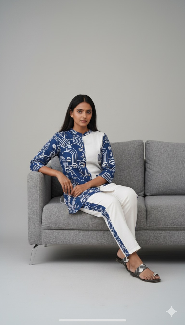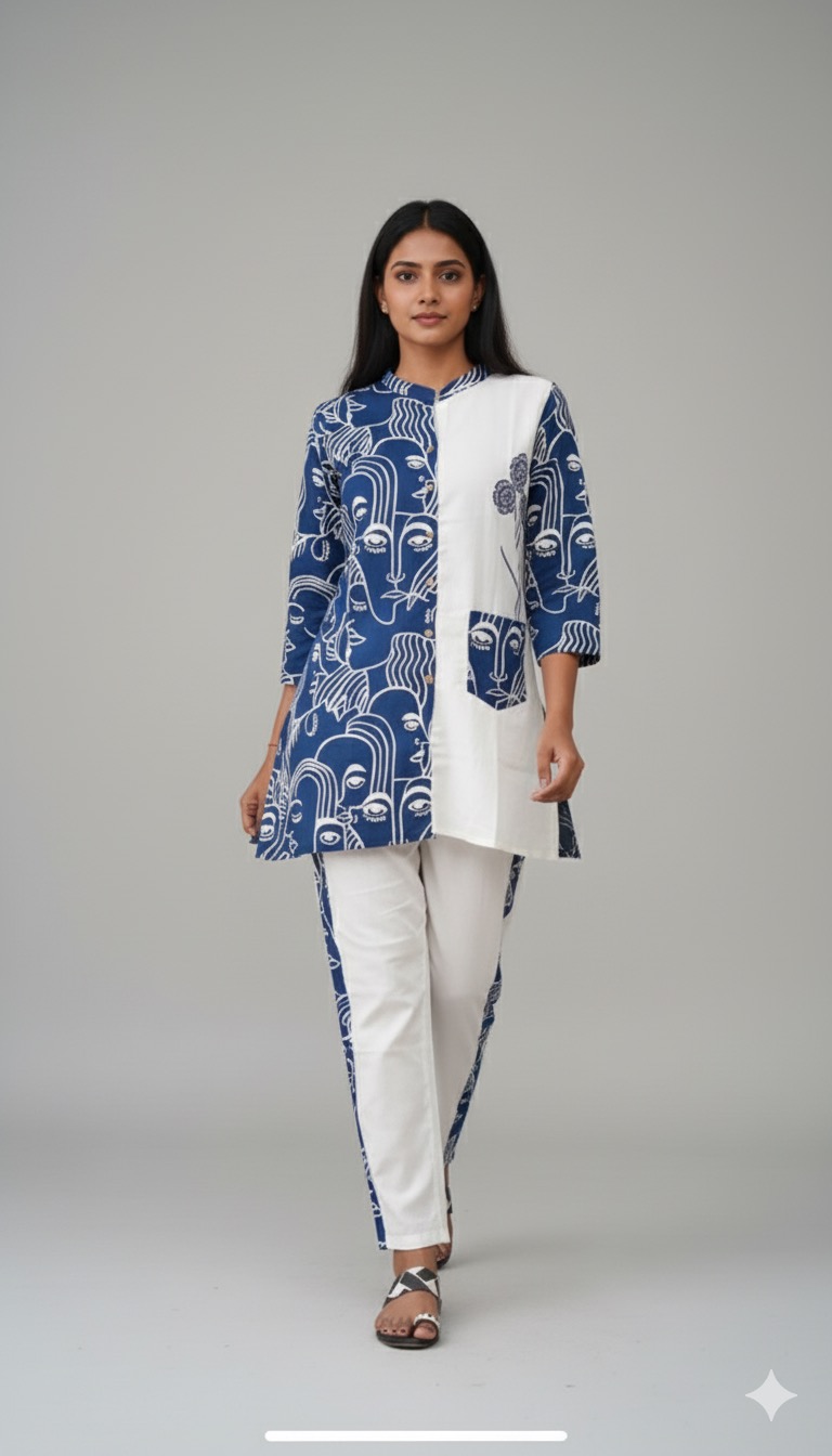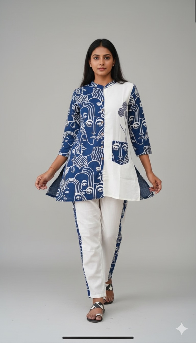Dark blue colour cotton designer wear cord set
